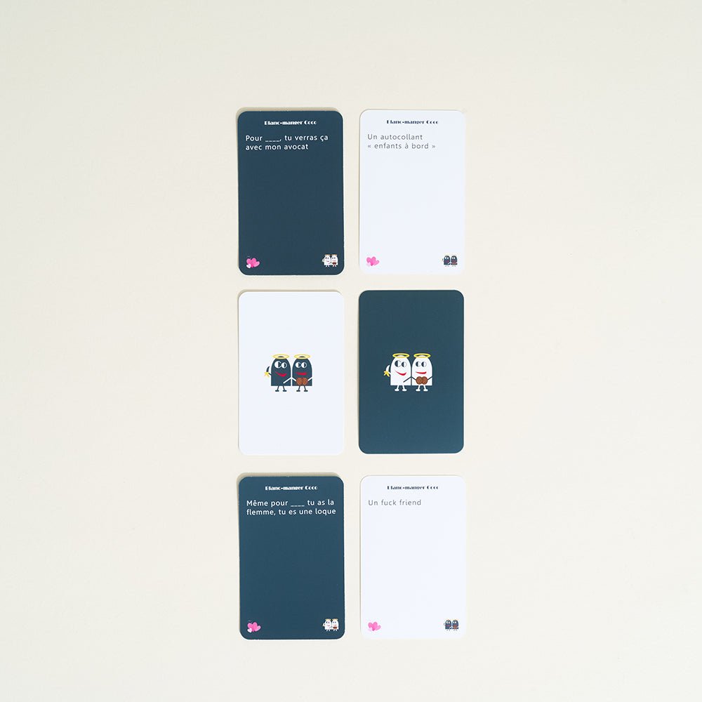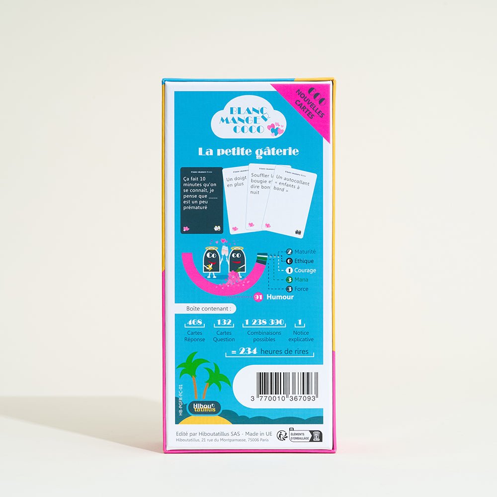 Blanc Manger Coco « La petite gâterie » est un jeu de cartes surprenant, irrévérencieux, politiquement incorrect… les âmes les plus sensibles le trouveront vulgaire. Il se réserve donc à un public adulte (ou 16 ans minimum), qui risque surtout de mourir de rire, et d’avoir mal au ventre. Encore mieux qu’une séance d’abdos, idéal pour la digestion !