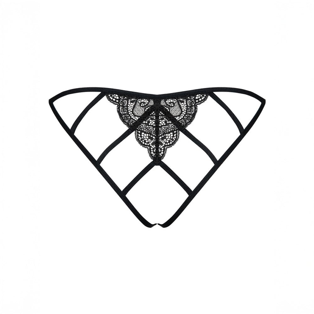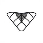 Si vous êtes une véritable tentatrice, vous craquerez pour cette culotte noire avec son nœud en satin. Sur l’avant de la culotte se trouve de la dentelle d’une véritable élégance et sur l’arrière, un jeu croisé de plusieurs élastiques à faire perdre la tête… Le particularité de cette culotte ? Son ouverture à l’entrejambe, parfaite pour faire monter le désir de la personne qui la regarde…