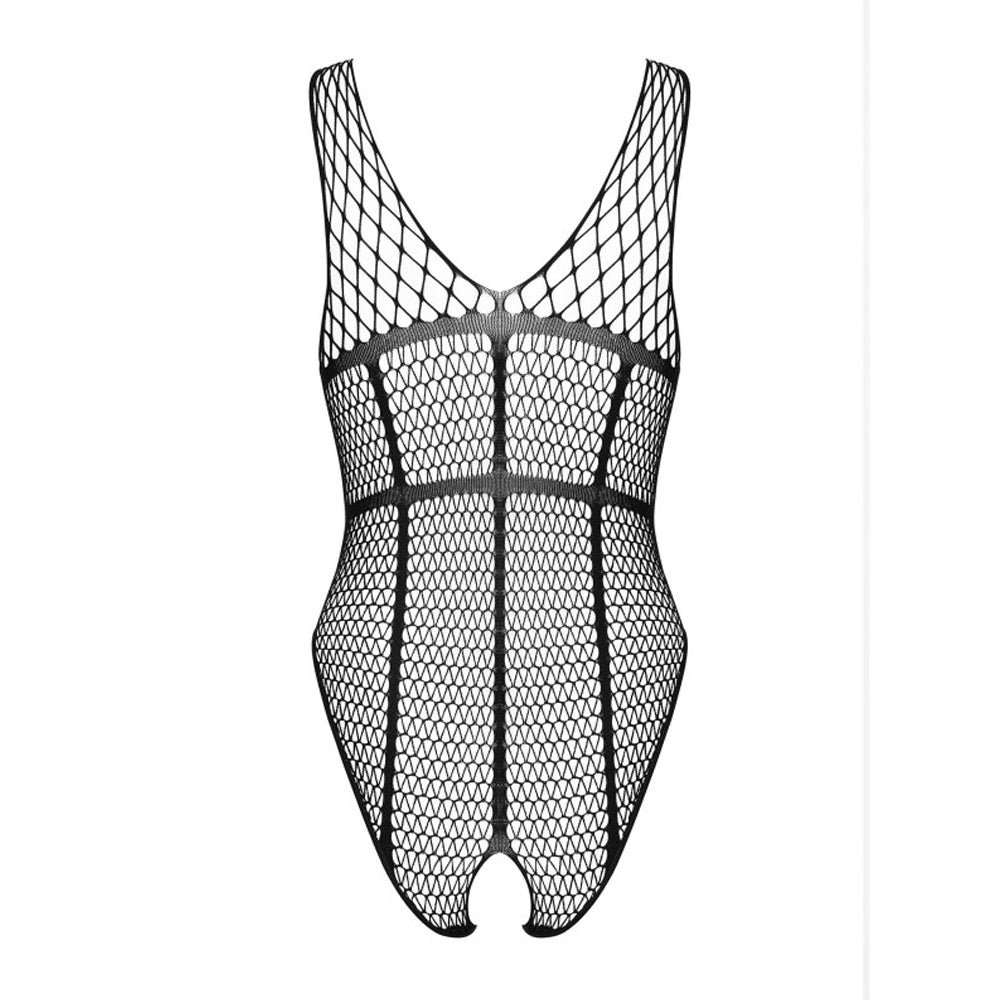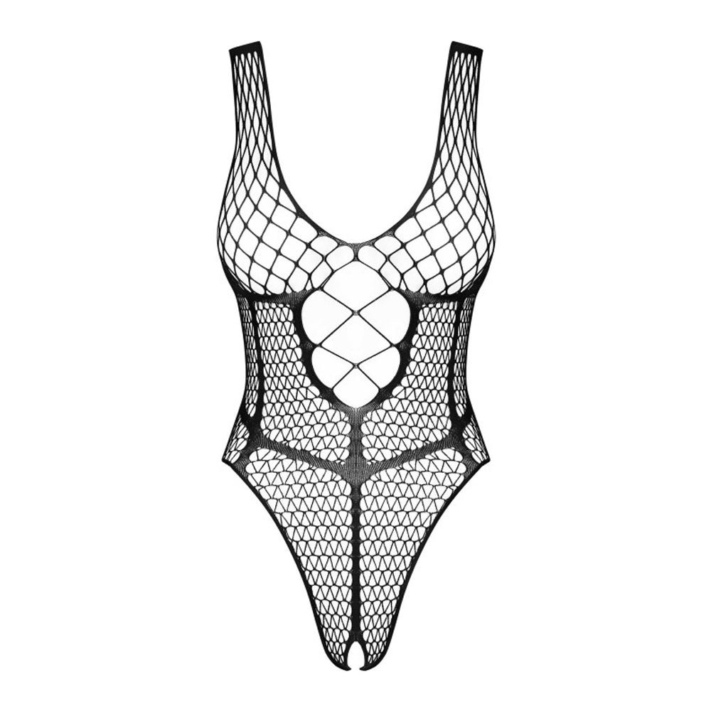 Laissez votre partenaire vous découvrir avec le body ouvert B117 de la marque Obsessive. Ce body est ouvert à l’entrejambe et est fait de multiples tissages pour un look sexy et audacieux. La maille est non recouvrante sur la poitrine, laissant celle-ci dénudée. Par son motif à rayures, le body a un effet amincissant. La maille est solide, résistante et extensible. Le body est disponible en taille unique (S/M/L).