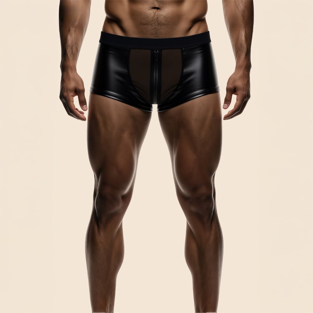 Découvrez le boxer simili cuir à fermeture Ugo de la marque Passage du désir lingerie.