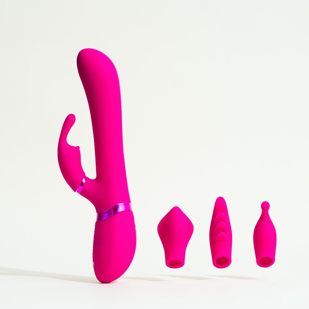 Au choix vous aurez : le classique lapin aux deux oreilles enveloppantes, le doigt unique pour un contact très ciblé, les 4 petites tiges très caressantes, ou la petite baleine avec ses deux nageoires latérales pour une diffusion large du plaisir… vous ne tarderez pas à leur donner des petits noms 😉