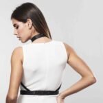 Ce harnais est inspiré du bondage et peut faire penser à un corset. Il est composé de lanières autour et sous les seins assurant un bon maintien. Le harnais descend le long du décolleté afin de le mettre en valeur. On y retrouve également un joli tour de cou (min : 31 cm et max : 41 cm), ainsi qu’un dos ouvert (tour de taille : min 60 cm et max 80 cm). Avec le harnais noir, vous avez 2 extensions supplémentaires.