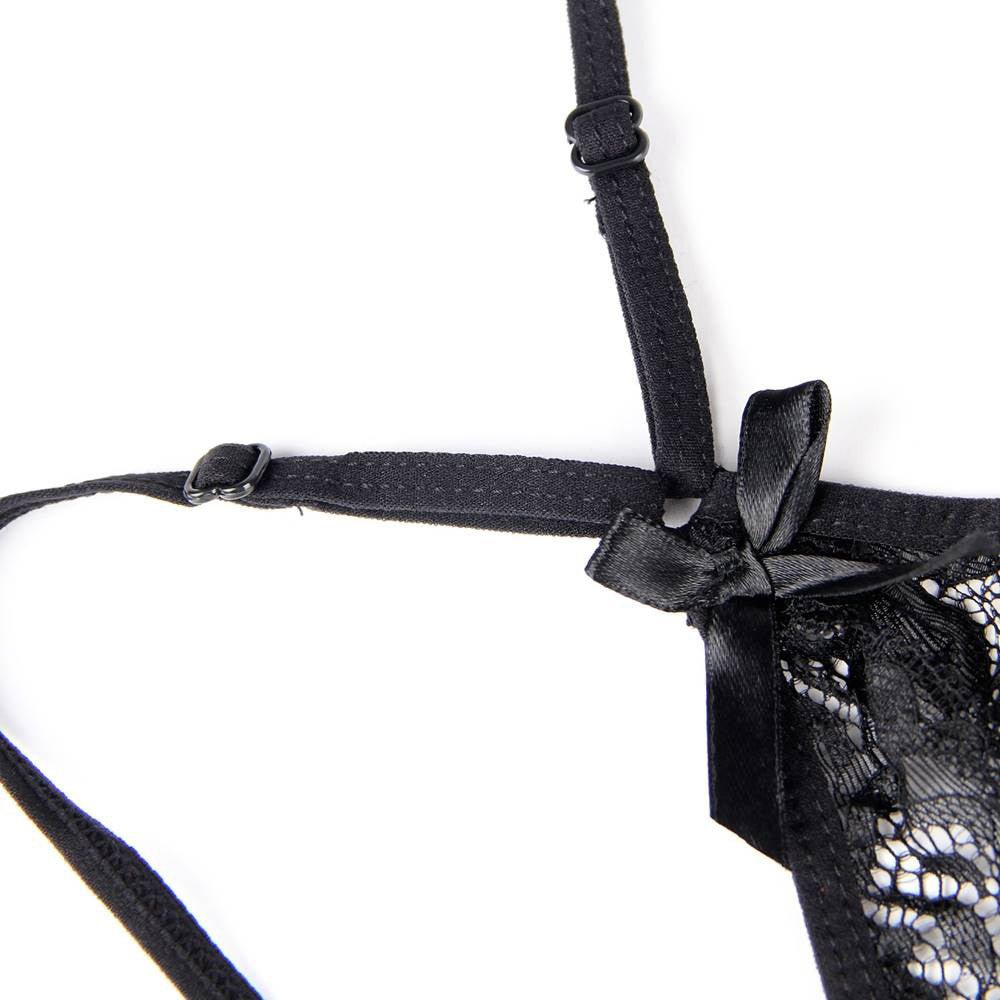 - La séduction avec une très jolie dentelle ajourée et une large ouverture dans le dos, surmontée d’un nœud en satin.