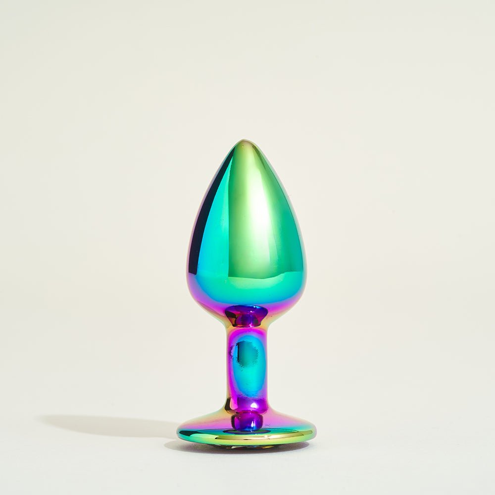 Qui a dit que les bijoux ne se portaient qu’autour du cou ou du poignet ? Le plug en métal bijou irisé de Passage du Désir sera votre nouveau bijou préféré !
