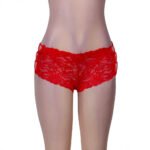 Laissez entrevoir votre peau avec le shorty aux lignes féminines en dentelle fleurie de OhYeah. Entre un tanga et un shorty, cette lingerie vous ravira à merveille.