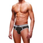 Montrez tous vos atours avec le slip ouvert de Prowler. Ce slip noir et blanc et avec le petit logo de Prowler sur sa ceinture vous permet de vous dévoiler et d’émoustiller votre partenaire 😉