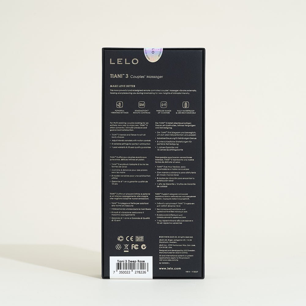 Tiani 3 de Lelo est la version améliorée du masseur pour couple. Pour vous rappeler le principe : Insérez la tige la plus fine dans votre vagin et laissez la partie plus large reposer sur votre clitoris. Les deux parties de Tiani vibrent, ce qui permet à votre partenaire de ressentir les vibrations à chaque va-et-vient.